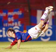 Alejandro Da Silva, con esta “palomita”, anotó el gol ante el 3 de Febrero y sumó su quinto tanto en el Apertura. El Ciclón comenzó a planificar ayer con una jornada con entrenamientos a doble turno el duelo de este sábado ante el vecino solense, pero la prioridad marcada en la agenda del técnico Gustavo Costas es el compromiso copero ante al equipo colombiano marcado para el martes de la semana venidera, que se disputará en el estadio Defensores del Chaco, a las 20:15.