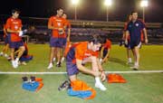 El titular de la entidad, ingeniero Luis Pettengill, y el vicepresidente, ingeniero Óscar Franco, acompañaron a los atletas para conocer el reducto a ser utilizado. Lorgio Álvarez activó en forma liviana bajo la atenta mirada del doctor Mario Porro y antes de la charla técnica se definirá si juega o no el boliviano, pero todo está encaminado a que sea utilizado desde el comienzo.