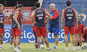 con sus nuevos dirigidos, ya en el gramado de la “Olla”.