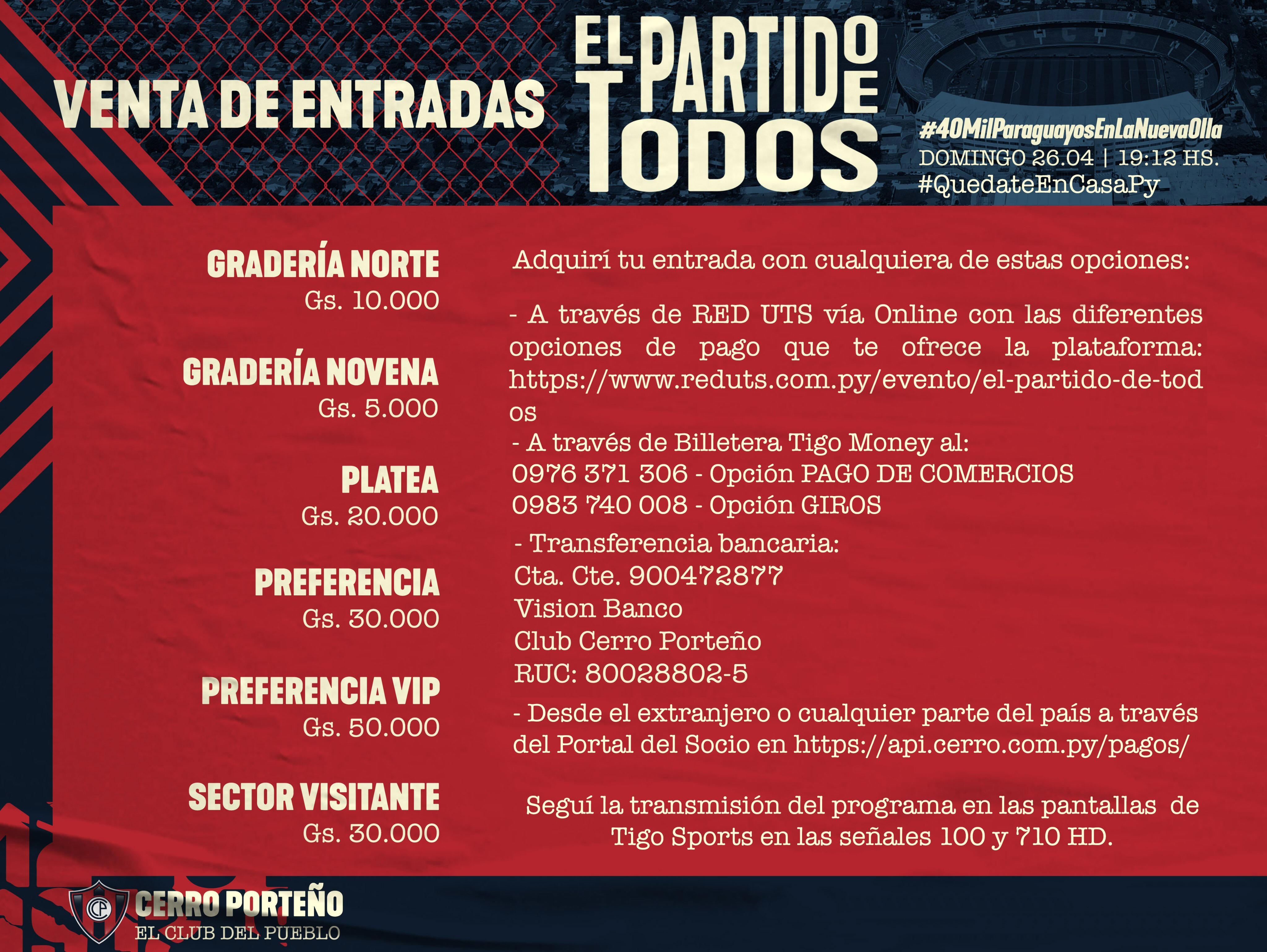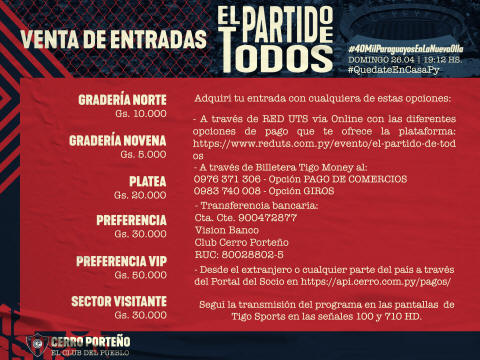 comprando tus entradas a este y a cualquier sector”, publicó la institución en