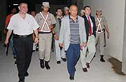 Retirada de presidentes. Aníbal Hermosa, presidente de mesa de la asamblea, y Luis Pettengill, con la custodia policial. |