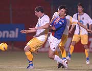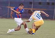 Como hasta para no respirar fue la marca de los luqueños sobre César Ramírez, pero el “Tigre” supo hacer de las suyas y fue el autor del gol que le concedió a Cerro el triunfo 1-0 ante Luqueño, en el juego estelar de ayer.(Fuente: ABC Color) |