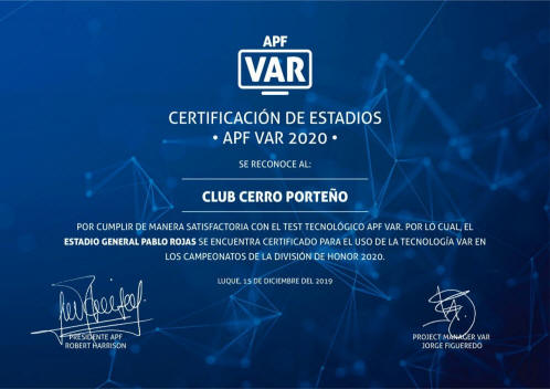 recibió la certificación VAR convirtiéndose de esta manera en el primer club