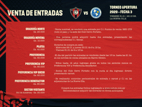 Graderías Norte: Gs. 20.000
