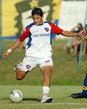 Pablo Júnior Giménez se dispone a sacar el derechazo que terminará en gol. Uno al que se lo vio muy motivado fue al atacante Pablo Giménez, autor del primer gol de los tres que marcó el Ciclón ante “Triqui”. Pablito destacó: “Me siento muy bien desde que volví a Cerro Porteño. Me dijeron que no estaba haciendo bien las cosas y ahora regresé para cambiar todo y me parece que voy por buen camino”.