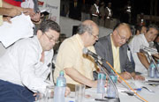 Luis Pettengill, Clodomiro Marecos, Aníbal Hermosa (el presidente de la mesa de la asamblea) y Oscar Franco. (Fuente ABC Color) |