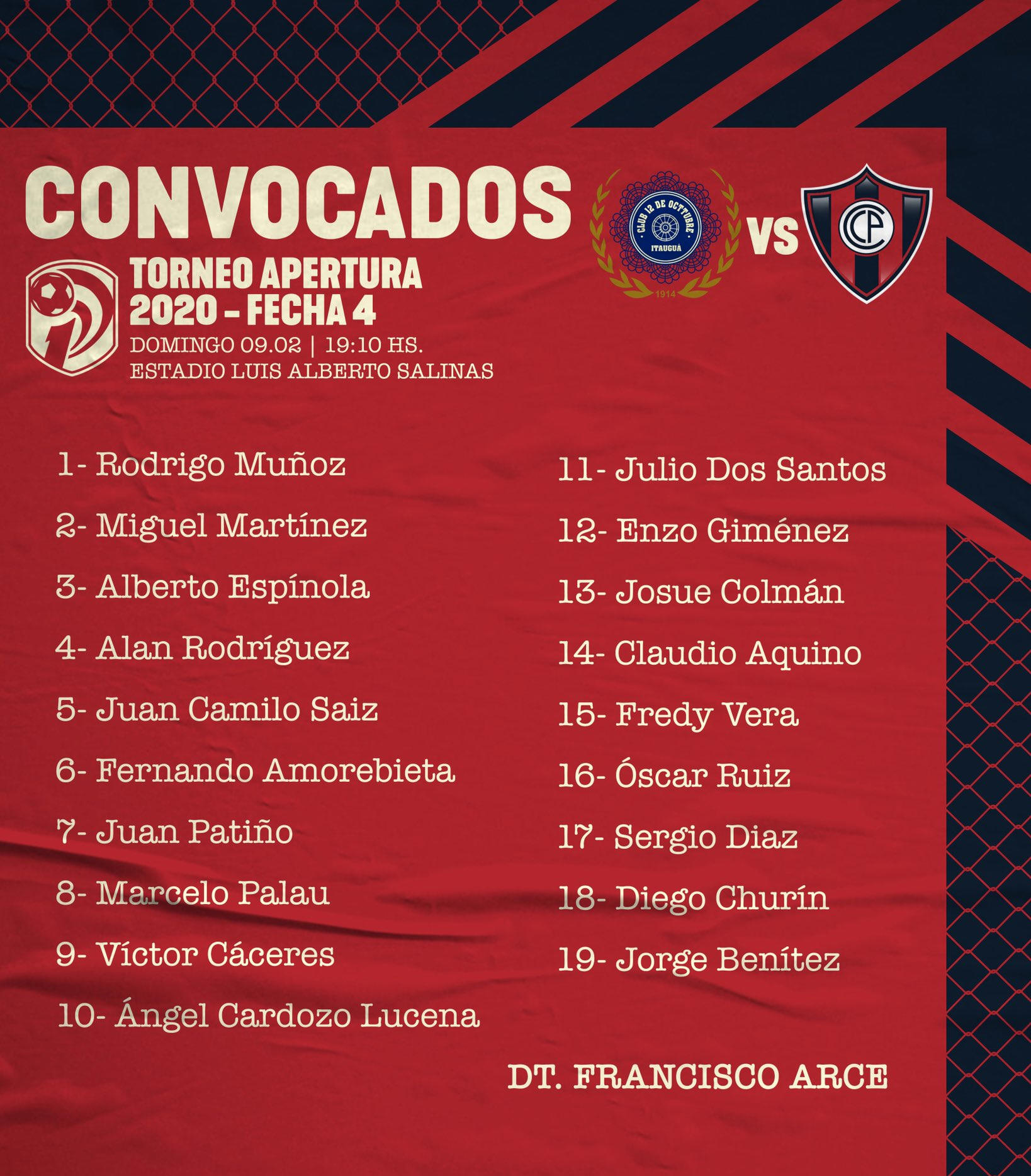 El equipo que podría Arce ante el “12” es con: