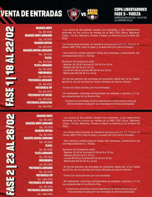 Precios de entradas para Cerro Porteño vs