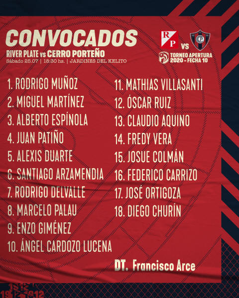 River Plate (11 puntos) recibirá la visita de un motivado Cerro Porteño (15). La principal novedad pasa