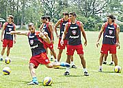 Durante el entrenamiento matinal de ayer fue palpable el gran entusiasmo que se apodera del grupo a pesar de la complicada situación en el Grupo 3, que tiene al colombiano Deportes Tolima como el líder con 7 puntos, seguido por Gremio 4, Cúcuta 3 y Cerro Porteño 1. Todos con tres partidos jugados en esta serie copera.