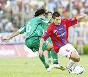 César Ramírez siempre estuvo bien custodiado ayer por los rivales.(Fuente ABC Color) |