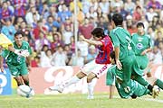 La jugada que dio el triunfo, Luis Cáceres después de dejar a varios defensores rivales en el camino ya sacó el remate que vencerá la resistencia del arquero de Silvio Pettirossi.(Fuente ABC Color) |