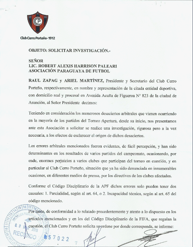 Cerro Porteño tendrá tres partidos