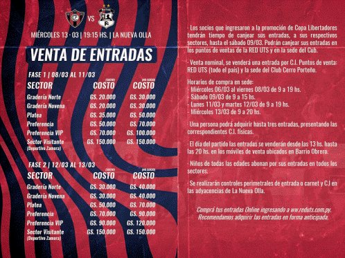 El atacante apareció entre el segundo central y el lateral y definió con el muslo sobre el achique de Víctor. Cerro jugaba mejor y el gol era justo. El Ciclón, que el domingo enfrentará a Deportivo Santaní en Ciudad del Este (18:45), volverá a jugar por el certamen continental el próximo miércoles: recibirá a Zamora de Venezuela a las 19:15Hs. Habilitan venta de entradas para el juego Cerro vs. Zamora Precios de las entradas para Santani vs Cerro Porteño: