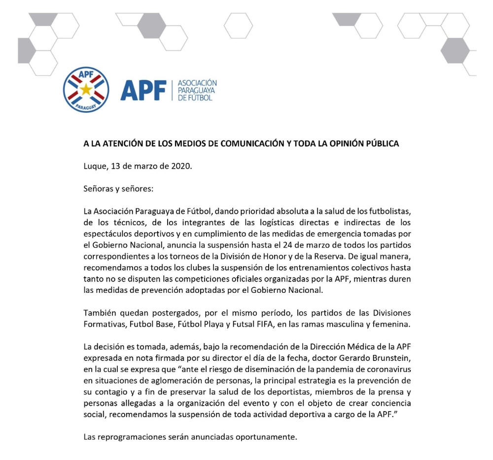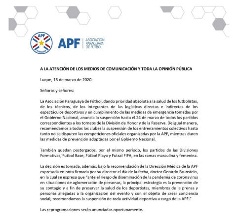 La APF suspende las competiciones hasta el 24 de Marzo e insta a los