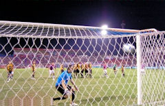 través de un jugador de defensa. Un tiro libre al borde del área fue ejecutado
