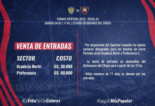 el juego de hoy. Los sectores para Cerro Porteño, serán Preferencia E y