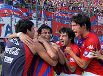Walter Fretes festeja con sus compañeros uno de los goles. |