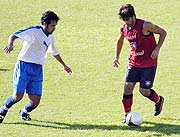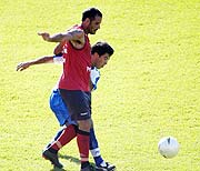 Rodrigo Costa, encara ante la marca rival, durante el juego de ayer. El equipo principal de Cerro Porteño ganó ayer su tercer partido amistoso de este año (antes se había impuesto a Caarendy y 3 de Febrero), en esta fase de preparación con vistas a la temporada oficial 2007 del torneo paraguayo y la Copa Libertadores de América. En su cancha derrotó a Sol de América por 3-2, con goles anotados por César “Tigre” Ramírez en dos ocasiones y Alejandro Da Silva, mientras que para el cuadro de Villa Elisa anotaron José Ortigoza y Arnaldo Valenzuela. César Ramírez, es acosado por el zaguero de Sol, Pedro González. Arbitro: Juan Carlos Escurra. Goles: PT: 7’ José Ortigoza (SA), 12’ César Ramírez (CP), 18’ Alejandro Da Silva (CP) y 28’ Arnaldo Valenzuela (SA). ST: 3’ César Ramírez de penal (CP).