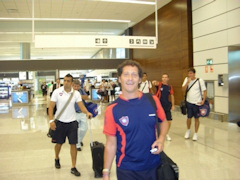 En la foto el arribo de la delegación azulgrana al aeropuerto Carrasco. |