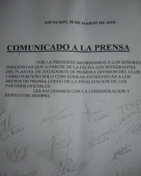 Como se sabe, los jugadores de Cerro Porteño no hablarán